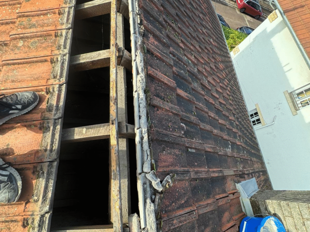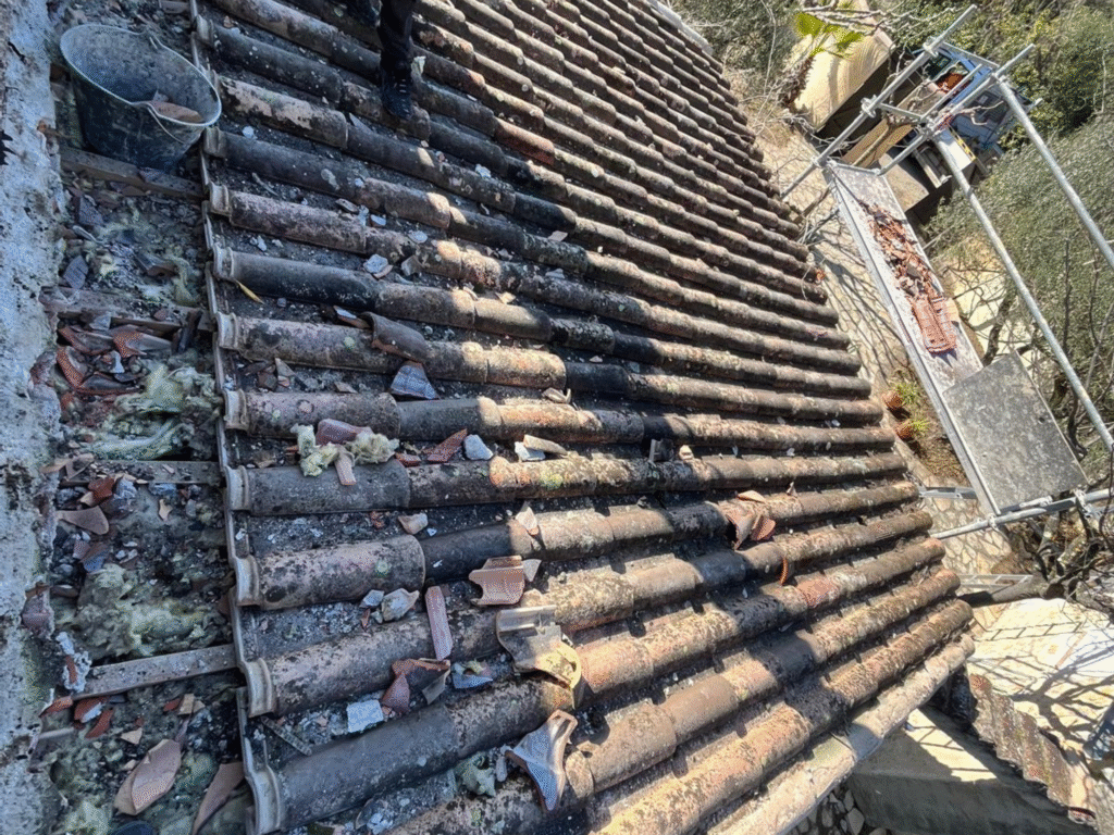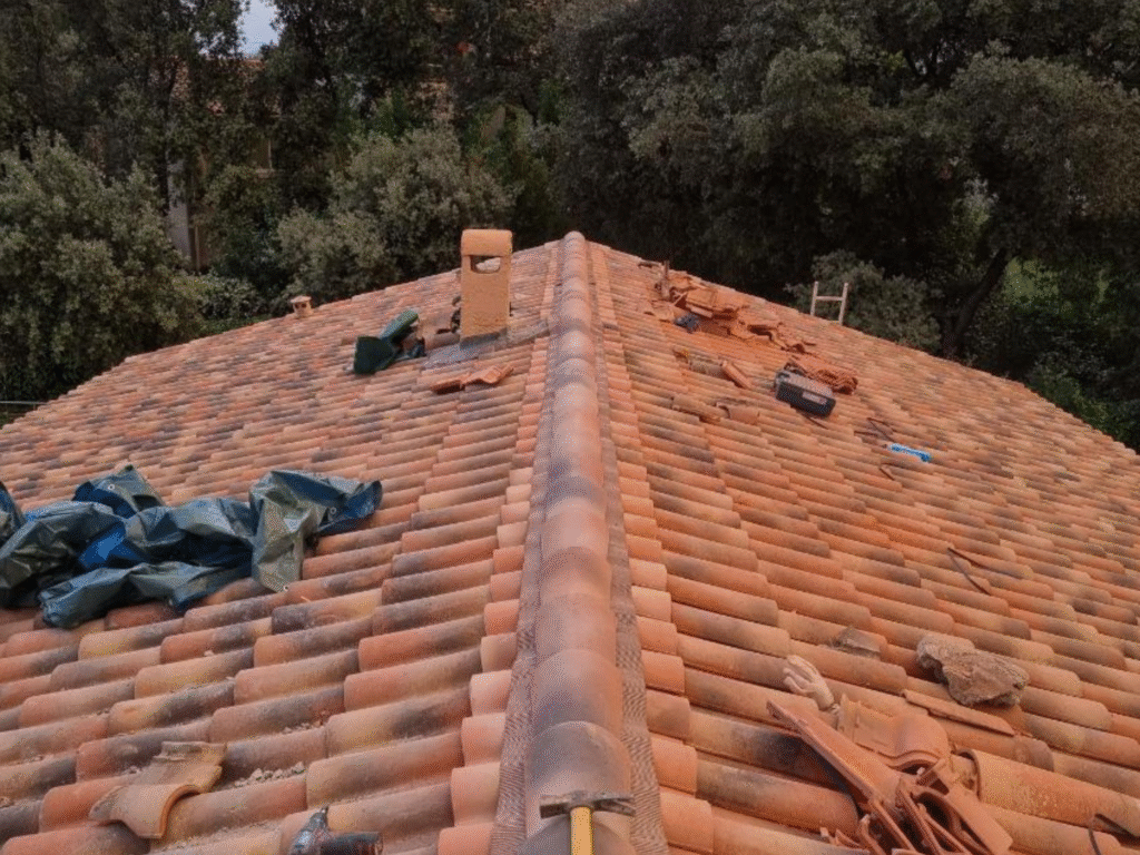 Une tuile cassée, déplacée ou manquante peut sembler anodine, mais elle peut vite causer des infiltrations. Nous intervenons rapidement pour remplacer les tuiles endommagées et restaurer l’étanchéité de votre toiture. Résultat : un toit sain et prêt à affronter les intempéries.